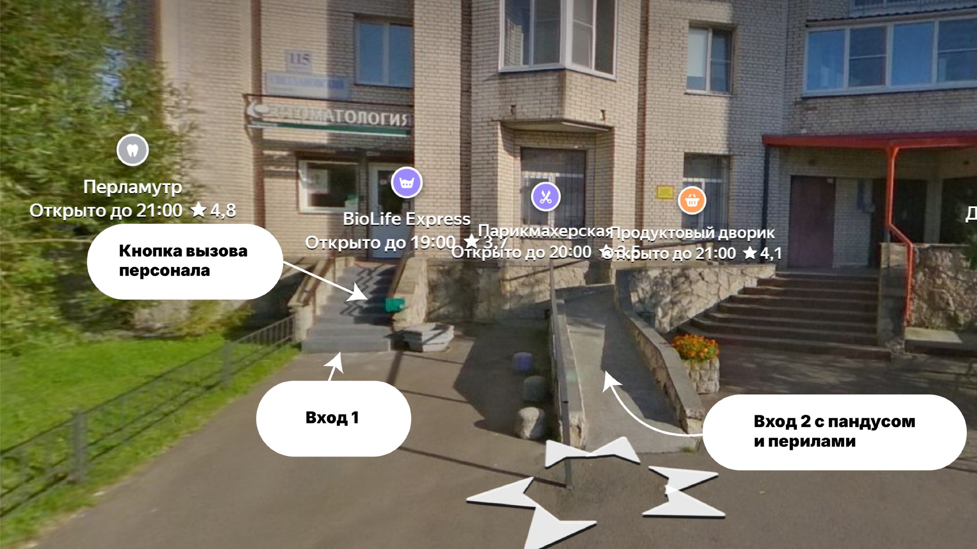 На входе в здание имеются элементы доступной среды, однако возможны отдельные ограничения, например, отсутствие автоматических дверей или недостаточная ширина дверных проемов.