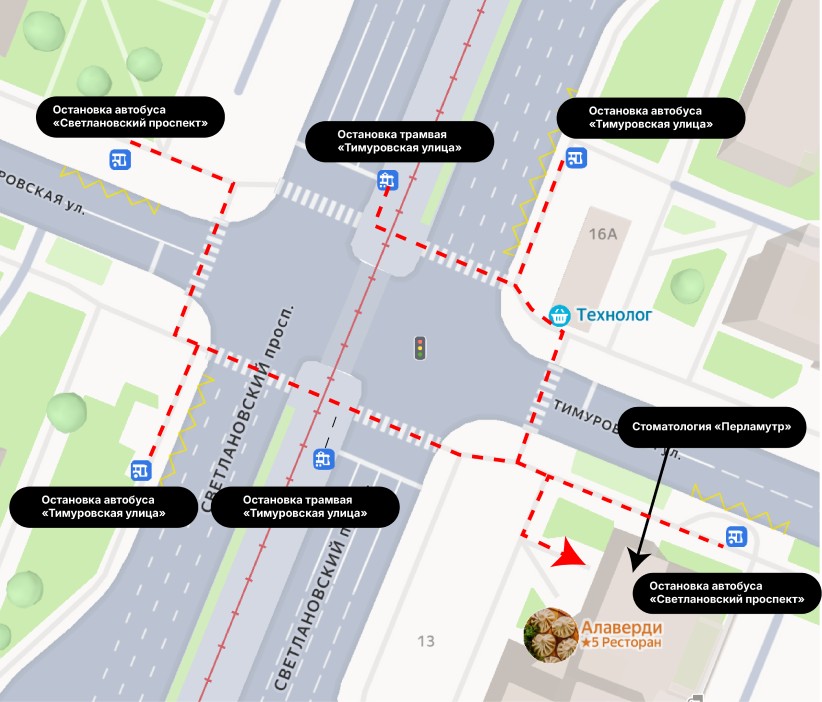 Пути движения от остановки трамвая “Тимуровская улица”: