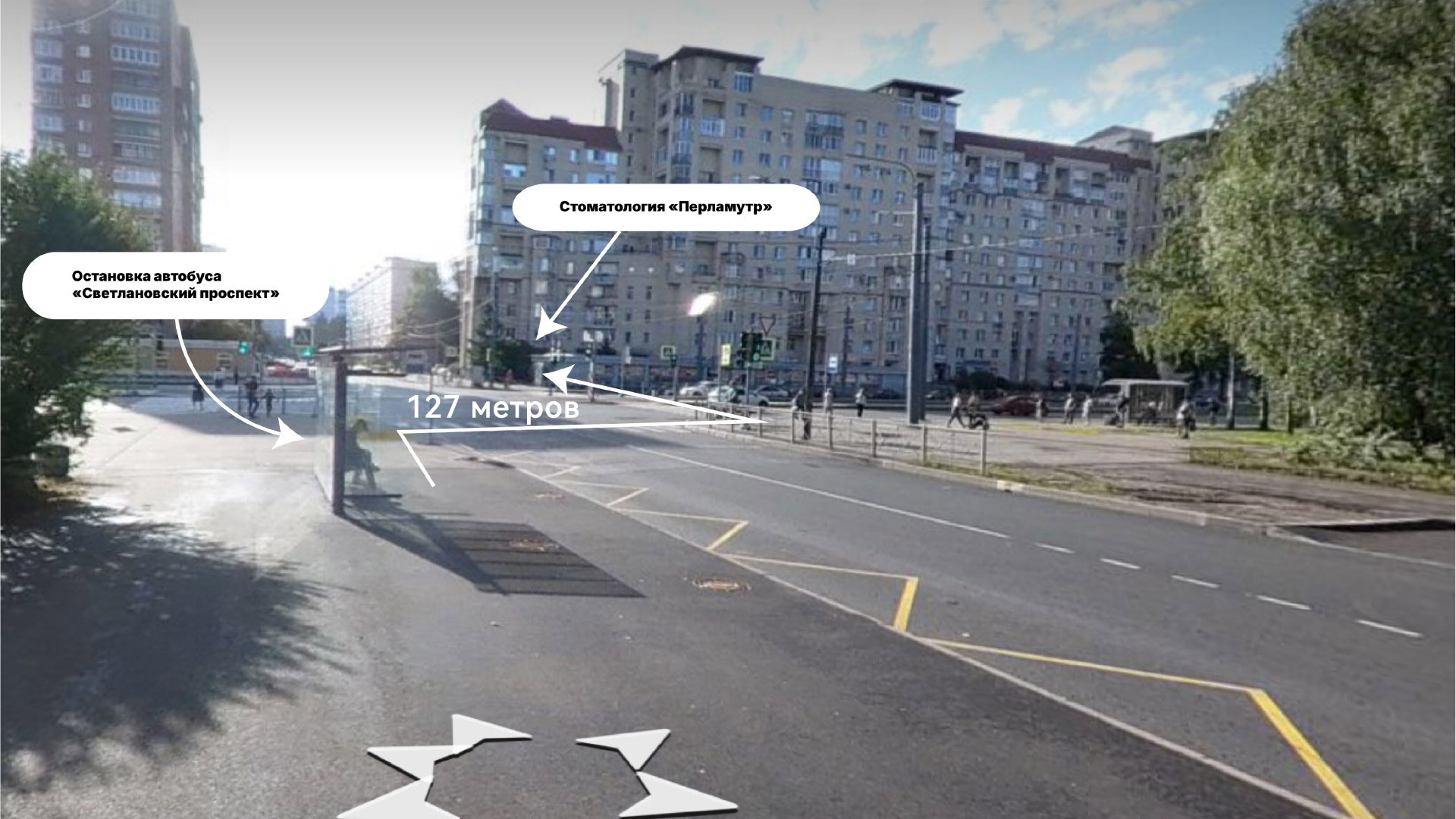 Пути движения от автобусной остановки “Светлановский проспект”: